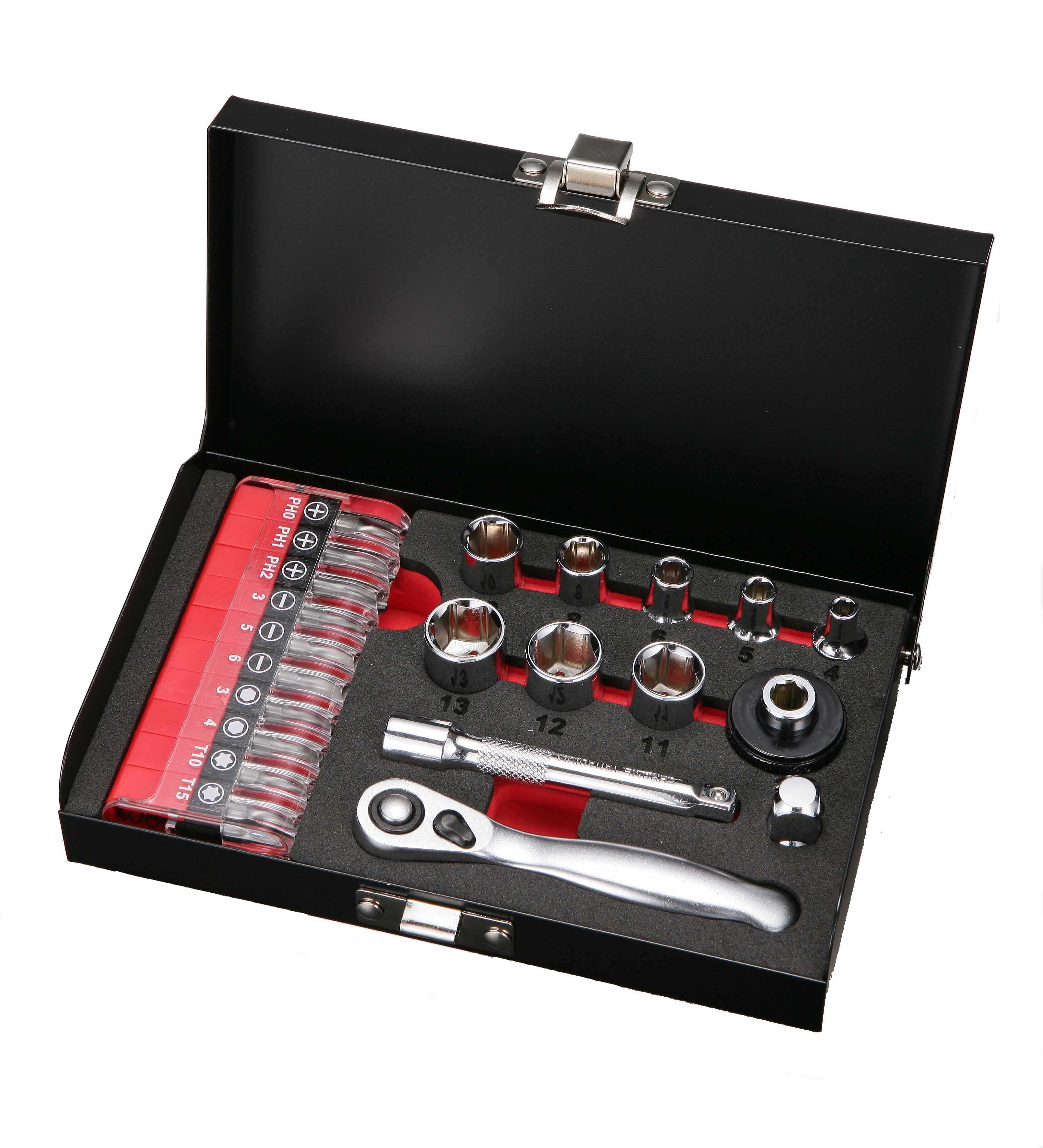 22PC Clip-type Bit Box & Ratchet Set.