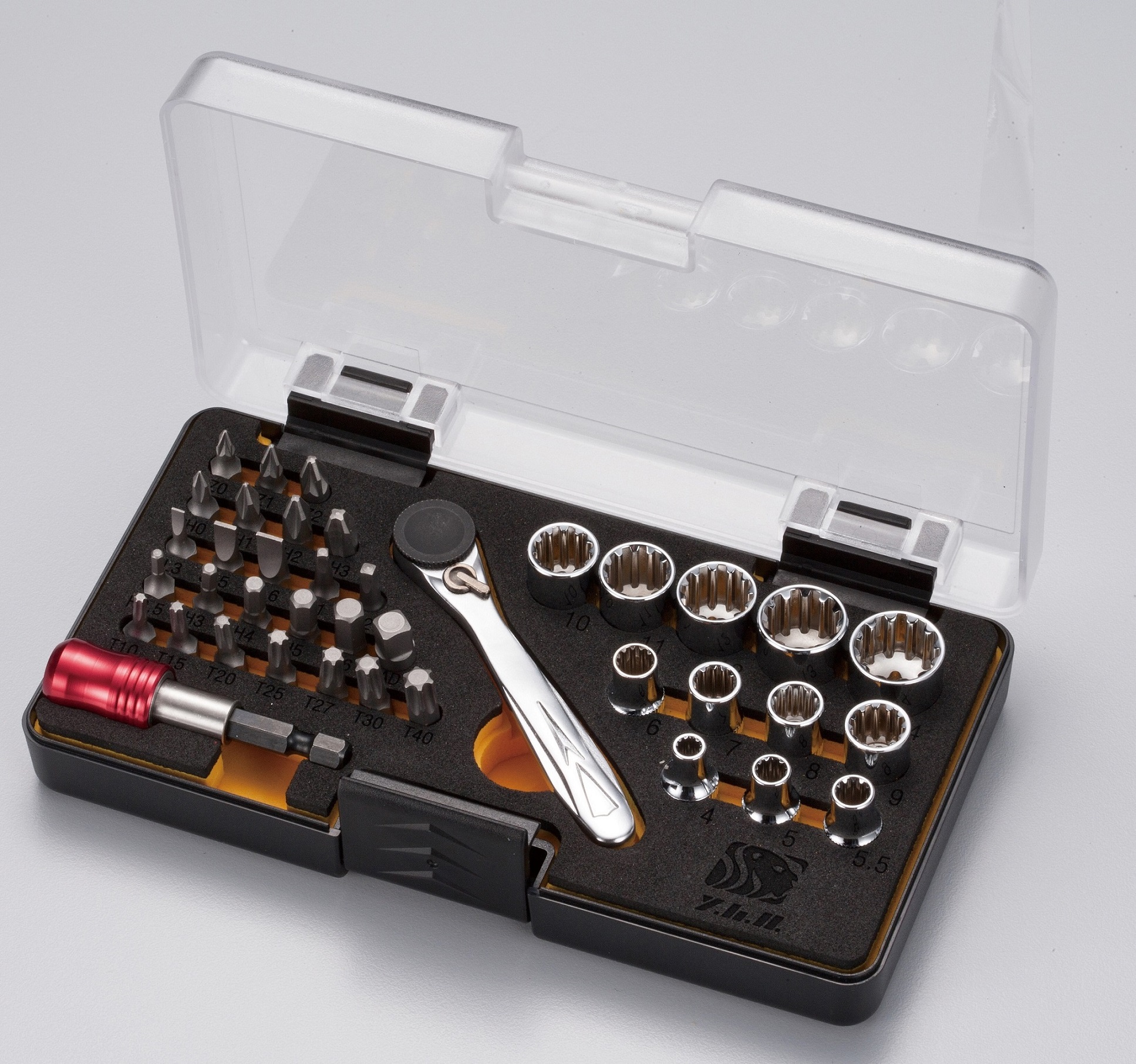 39PC 1/4'' Dr. Stubby Ratchet Handle With Bit Socket Set.